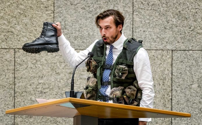 Thierry baudet van forum voor democratie (fvd) kreeg dinsdag in de kamer een veeg uit de pan dat het kabinet die dreiging ziet is ,,ook maar een mening, aldus baudet die een militair als minister.